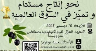 المركز الليبي لأبحاث شجرة الزيتون يعزّز حضوره العلمي الدولي في “المؤتمر الدولي من الزيتون إلى الزيت: نحو إنتاج مستدام وتميز في السوق العالمية” بصفاقس. شارك د. مصطفى الساعدي _ كمتحدث رئيس_ في المحاضرة العلمية التي عُقدت ضمن فعاليات المؤتمر بالمعهد العالي للبيوتكنولوجيا بصفاقس في تونس، خلال شهر ديسمبر 2025. وقد ألقى د.الساعدي محاضرةً علميةً متخصصةً تحت عنوان: “الأفات والأمراض التي …