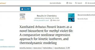 ضمن المشاريع البحثية المشتركة المحلية والدولية للهيئة الليبية للبحث العلمي؛ يعلن الأستاذ الدكتور خالد محمد الضبيع _الباحث بالهيئة الليبية للبحث العلمي، وبالتعاون مع فريق بحثي دولي من جامعة بنغازي وعدد من المؤسسات الأكاديمية_ عن قبول ونشر بحث علمي جديد بعنوان: Xanthated Arbutus pavarii Leaves as a Novel Biosorbent for Methyl Violet 6B: A Comparative Nonlinear Regression Approach for Kinetic, Isotherm, …