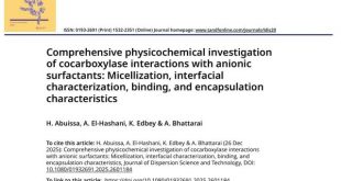 ضمن المشاريع البحثية المشتركة المحلية والدولية للهيئة الليبية للبحث العلمي يعلن الأستاذ الدكتور خالد محمد الضبيع _الباحث بالهيئة الليبية للبحث العلمي_ وبالتعاون مع فريق بحثي دولي من جامعة بنغازي وعدد من المؤسسات الأكاديمية، عن قبول ونشر بحث علمي جديد بعنوان: Comprehensive physicochemical investigation of cocarboxylase interactions with anionic surfactants: Micellization, interfacial characterization, binding, and encapsulation characteristics المؤلفون: H. Abuissa, A. …
