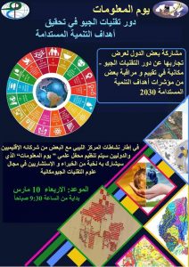 يتشرف موظفي المركز الليبي للإستشعار عن بعد وعلوم الفضاء بدعوة كل المهتمين و المختصين لحضور يوم المعلومات InfoDay الذي سيكون بعنوان “Geo4SDGs”.