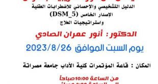 نقلا عن مركز البحوث النّفسية والتّربوية درنة، أحد المراكز البحثيّة التّابعة للهيئة الليبيّة للبحث العلمي . #إعلان #دورة_تدريبية. #مصراتة يعلن مركز البحوث النفسية والتربوية درنة، التابع إلى الهيئة الليبية للبحث العلمي، عن دورة تدريبية بعنوان : #الدليل التّشخيصي و الإحصائي للاضطرابات العقلية الإصدار الخامس (DSM_5) الدكتور : عمران أنور الصادي. بقاعة المؤتمرات كلية الآداب جامعة مصراتة. يوم السبت الموافق: 2023/8/26م. …