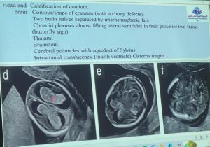 ( Trans-cerebellar Diameter / Fetal foot length / Renal size / Sacral length / Sacral length /…… etc)، أيضاً تم استعراض الفروق وأهمية وأولويات استعمال أجهزة التصوير المقطعي وأجهزة التصوير بالرنين المغناطيسي للأجنة مع تحديد توقيت استعمال تلك الأجهزة وفق العمر الزمني للأجنة من حيث السلامة والفائدة في التشخيص.