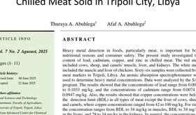 #نشر ورقة بحثية جديدة # ويستمر العمل و النشر بالمركز الليبي المتقدم للتحاليل الكيميائية ملخص البحث : يعد الكشف عن المعادن الثقيلة في الأغذية وخاصة اللحوم أمرا مهما لأسباب غذائية وسلامة المستهلك . بحث الدراسة الحالية في محتوي الرصاص والكادميوم والنحاس والزنك في اللحوم المبردة شملت اللحوم الحمراء عضلات و كبده وكلي الأبقار والأغنام والابل . وشملت اللحوم البيضاء عضلات …