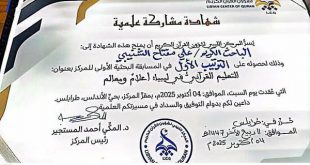 إنجاز علمي جديد للهيئة الليبية للبحث العلمي الدكتور علي مفتاح الشنيبي يحرز الترتيب الأول في المسابقة البحثية الأولى للمركز الليبي لشؤون القرآن الكريم في إنجاز علمي متميّز يُضاف إلى سجل الباحثين الليبيين، أحرز الدكتور علي مفتاح الشنيبي، أحد الباحثين بإدارة العلاقات العلمية والثقافية بالهيئة الليبية للبحث العلمي، الترتيب الأول في المسابقة البحثية الأولى التي نظمها المركز الليبي لشؤون القرآن الكريم، …