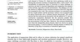 تم بحمد الله وتوفيقه نشر ورقة بحثية للمركز عن طريق أ .فاطمة البهليل – و أ.منصور الغضبان ـ المركز الليبي المتقدم للتقنية وبمشاركة كلا من : *زياد م. شقاف ـ المركز الليبي للبحوث الهندسية وتقنية المعلومات، بني وليد. * اأشرف م. الأسود ـ قسم الهندسة الميكانيكية، جامعة الزنتان، الزنتان* بعنوان : Improvement of Corrosion Resistance in EZ33 Magnesium Alloy via …