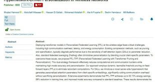 تتقدم الهيئة الليبية للبحث العلمي بخالص التهاني لبروفيسور حسن الصلابي، المستشار بالهيئة، بمناسبة نشره ورقةً بحثية متميزة في مجلة IEEE Transactions on Machine Learning in Communications and Networking، إحدى المجلات العالمية المرموقة في مجال الذكاء الاصطناعي والشبكات. عنوان الورقة: Personalized Federated Learning with Adaptive Transformer Pruning and Hypernetwork-Driven Personalization in Wireless Networks يعرض البحث إطاراً علمياً متطوراً يجمع بين التعلم …