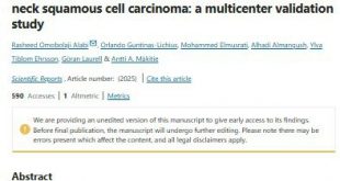 تتشرف الهيئة الليبية للبحث العلمي بالإعلان عن نشر ورقة بحثية جديدة للبروفيسور محمد المصراتي – مستشار بالهيئة – شارك فيها ضمن فريق بحثي دولي من جامعات ومراكز بحثية مرموقة في فنلندا، ألمانيا، والسويد. تحمل الورقة عنوان: Machine learning for survival outcome in head and neck squamous cell carcinoma: a multicenter validation study “التعلم الآلي لتوقع نتائج البقاء لمرضى سرطان الرأس …